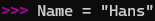 [Name] ist eine Variable, also ein Platzhalter für einen Wert, in diesem Fall für die Zeichenkette „Hans“.