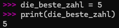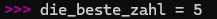 Weis den Wert 5 der Variable “die_beste_zahl” zu.